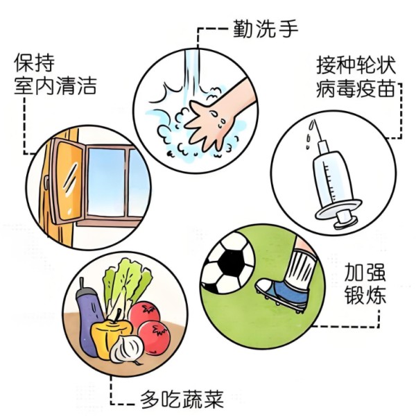 - 妥善处理患儿粪便,用含氯消毒剂消毒污染物体表面。