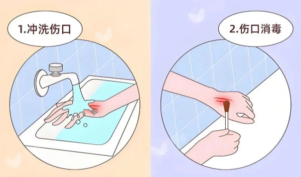 · 彻底冲洗 用干净的流动清水(如自来水)持续冲洗伤口3-5分钟,清除表面的污物和细菌。